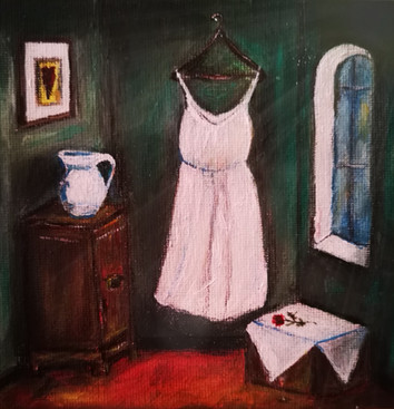 I love the contrast between the background and the well painted dress. Really nice.