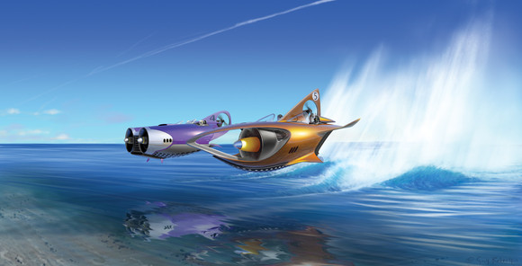 He drives a racing car with a turbine engine designed by legendary, ingenious chief mechanic Mark Hurryupper.