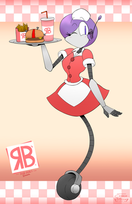 Naturally, my OC Fnuzzlee finds such reminders incredibly infuriating, since she'd much rather spend her time stuffing her gob full of burgers and junk food. As a monster herself, she doesn't feel threatened by Tella's "healthy diet compliance systems", even if they do involve missiles and laser eyes! She's just knock her block off and push her down the stairs, for old Professor Hyde to repair for the umpteenth time...