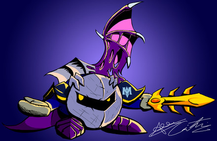 Here he is at last! Kirby's awesome rival, the masked swordsman, Meta Knight!I made his design a kind of fusion between his original design and his modern one. This is most noticeable when observing the design of his sword, Galaxia.