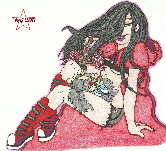 A sort of Pin-up style Little Red Riding Hood.She was done first just on paper with ink, markers, and colored pencils.
