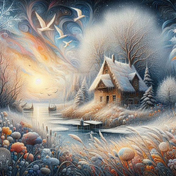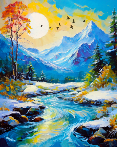 #fantasyart #forest #digitalpainting #conceptart #bird #blue #cabin #cold #flowers #lake #moonlight #mountains #scenery #art #midjourney