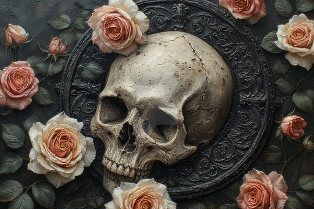 #horror #macabre #skull #digitalart #magic #gothic #conceptart #surreal #creepy #book #parchment #prophecy #roses #writing #art #midjourney