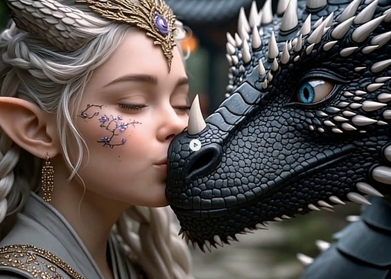Frafra60 - A young woman dressed as a warrior, riding a drago [🤖]