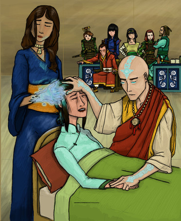 SUKI: (sweet tone) Katara knows how to blood-bend at any phase of the moon these days! And I heard that Aang can use spirit bending to turn a person into a flesh-and-blood statue!