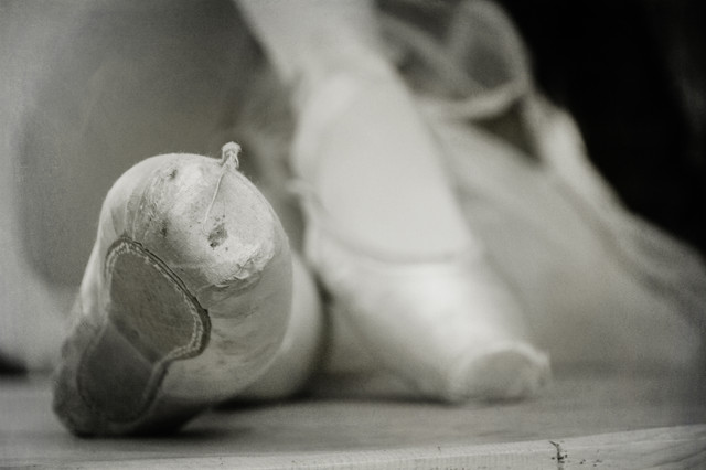 so generally i would not post random pics of pointe shoes HOWEVER i shot this because it was not posed or set up in any way. my shoes are just sitting here on my incredibly messy table behind my computer with all my undone paperwork, lenses, leftover breakfast dishes, unsorted mail, unread magazines and empty juice boxes left by my son and it just so happened that the light came in the back door just right and the ribbons were hanging off the side catching it and it just inspired me. plus i happened to have the 85mm on my cam and am on my way this am to buy a 70-200mm 2.8 from some guy in san clemente and i'm gonna compare the two at that range. so anyway, there you have it, random pointe shoe picture.Related content