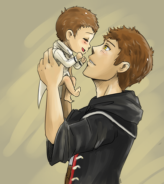 Dad Chrom and baby Morgan! ❤(There is also another part with mom Robin and Lucina, but I don't know if I'll post it or not)