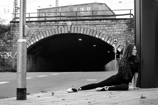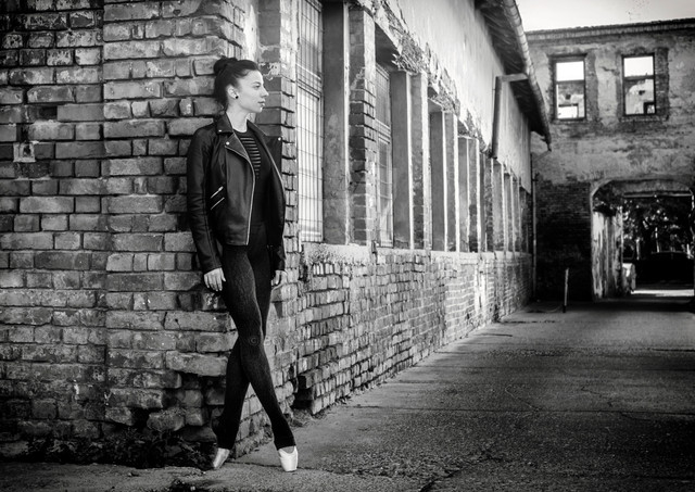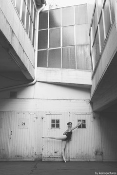 This is a really beautiful photograph. I like the casualness of the subject combined with the elegance of ballet. I love the expression on her face and how it looks like she is standing normaly until you see that she is standing on her toes. I like it a lot!