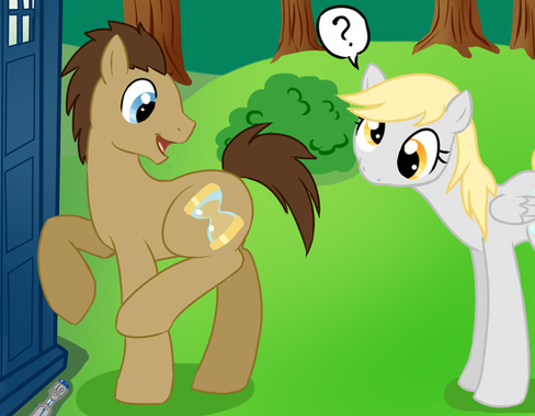 The Master, upon arriving in Equestria, rented a room from Derpy. After a few days of ignoring her affections, he realized she was probably one of the most intelligent ponies he'd met. Enough to somewhat tolerate her as an assistant.