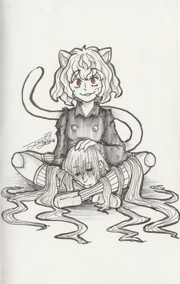 #anime #fanart #injured #komugi #pitou #neferpitou #inktober #hxh2011 #inktoberday29 #inktober2019 #hunterxhunter #inkdrawing #pendrawing #traditionalart #drawingchallenge #hunterxhunter2011