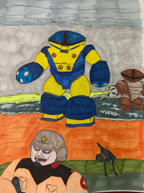 Hereβs something I made a few weeks ago, started as a more detailed version of my persona and just kinda became its own thing, a mass production model if you will (though probably more accurate to call it a limited production model), the M1EPV Expandable Frame Armor.Also the gunβs magazine is a big loop of caseless ammo.