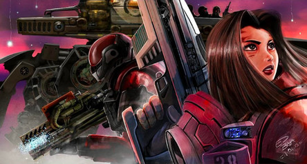 Drawing ships and mech armor is not my forte, so I focused on what I could do first- portraits. I added a human element to an otherwise very cold theme. Overall I am pleasantly surprised at the outcome. Expect more of this style of art in the future.