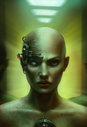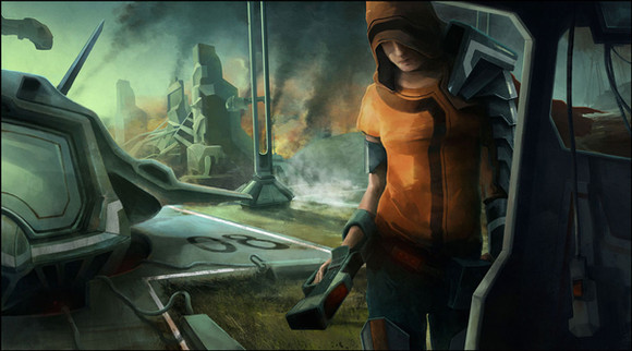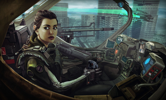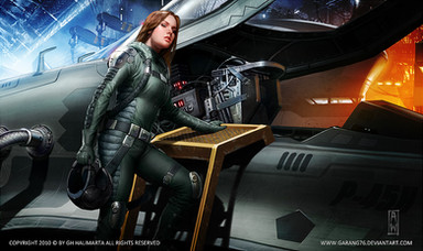 It's cool and the girl's face is extremely well done. However, since the piece is called 'Spaceport Invasion', wouldn't it make sense to at least have it in the picture? Like, a cool epic structure in the background or something like that?