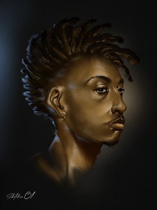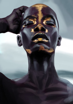 Wow I really like the brushes you've used and the palette choices, it makes the figure stand out from the background but it also mimics it too, and I like that.