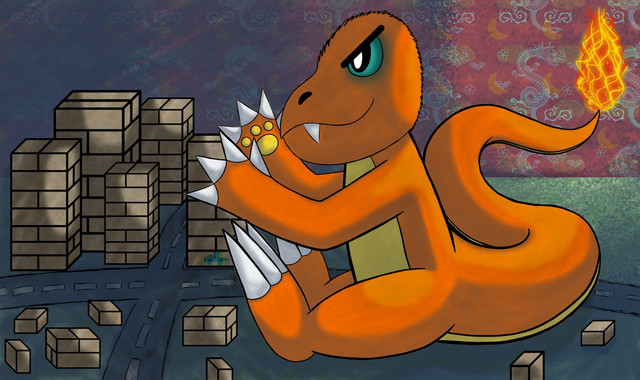 A sort of remake of my old scrapped picEep, everyone run!! Pyronzilla is stomping down the street!!!X3