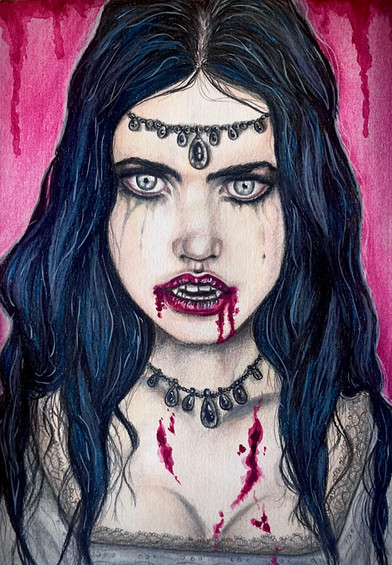 #vampire #traditionalart #spooky #darkart #darkfantasy #death #drawing #freehandart #gothicart #gothicfantasy #portraitgirl #vampiregirl #vampirelady #victorian #victoriandress #victorianstyle #creepyart #victoriangothic #markersdrawing