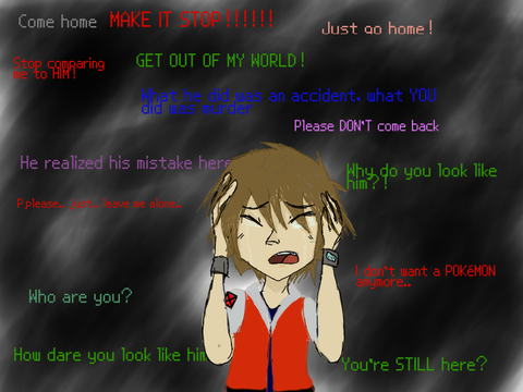 Well here it is. The final version of the picture. As you can tell I made a lot of changed on the computer when doing this, I actually gave him arms, added a hat. The image itself is suppose to show how Steven held onto his anger and sorrow for so long that it started to poison his body and soul. I did make him appear rather normal for the most part, but you can see this black cloudy shadow over part of his face.Clothes: