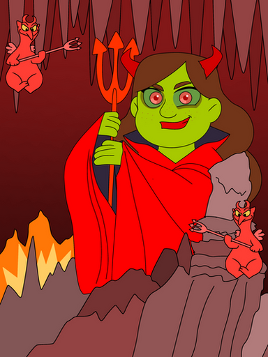Wow so sinister! This really brings out the villain in Vera, which is clearly what you were going for so great work! I also love the idea of the literal hot tub and her pitchfork is very unique looking! And shieeet I didn't take ya for someone who listens to Sinatra. Pleasant surprise, I love that man's work!