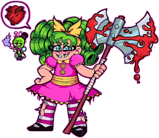 I love her dress, it fits her perfectly and I love the way she's holding one of her monster heads ;v; it's just adorable ;v;