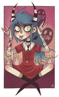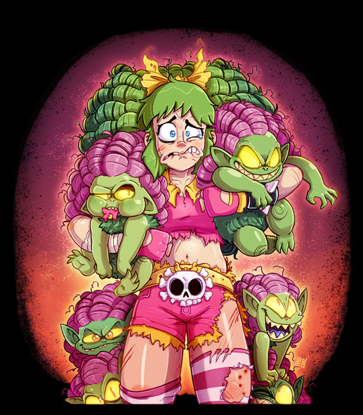 The gremlin vibe is SO GOOD, I love her LHKGHK. Once again I love the hair so much <33 they're adorable yet also fit her gremlin energy so well LOL, and the idea of monster hair is so creative!! ;v;