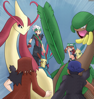 Meanwhile, Minato-sensei notices Asertijo's Vaporeon Kity readying itself to shoot a chilly ice beam at Togekiss, so he calls his Grovyle Lizzy out to defend the preoccupied Togekiss with Leaf Blade! Lizzy is so fast, he's sure to dodge the beam and deliver a swift and powerful blow to Kity!