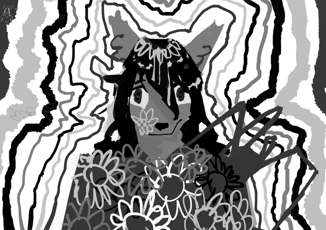 #pixelart #digitalart #cartoon #originalcharacter #doodle #fluffy #anthro #anthropomorphic #canine #dog #doggirl #dress #earrings #furry #furryfemale #jewelry #monochrome #necklace #pretty #caninecharacter