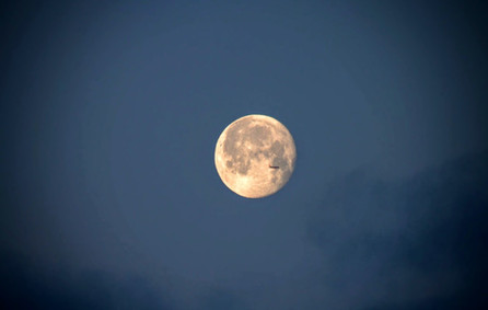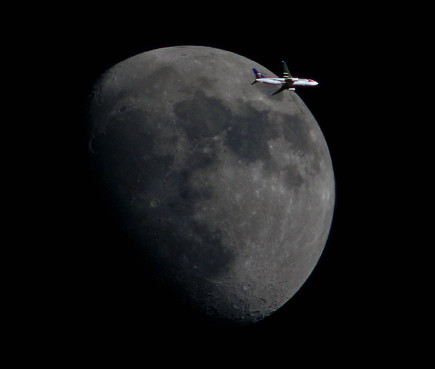 I did a couple of edits to the left side of the moon. I took out a shadow. It looked shitty but size and border are the only others. I have the tail of the jet in the next photo I took. It took me by surprise, thats for sure.Enjoy.