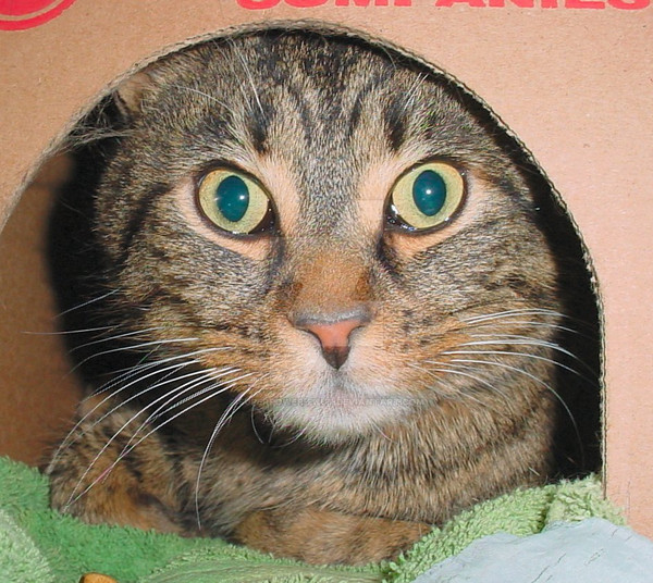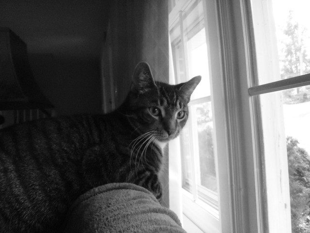 You've perfectly captured the mischievousness of your cat The perspective is great also. (Pets the Sara Cat)