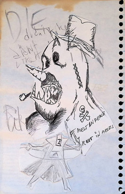 Took a psychedelic influenceSkull drawn with 6h, 4h, 4b, 5b, 6b on canvas, painted with black and red acrylic.