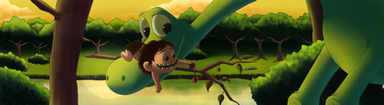 Arlo and Spot from Disney's Good Dinosaur.I tried a simplistic style thingo on this drawing but unlike my prev one it did not work out for this one very well.
