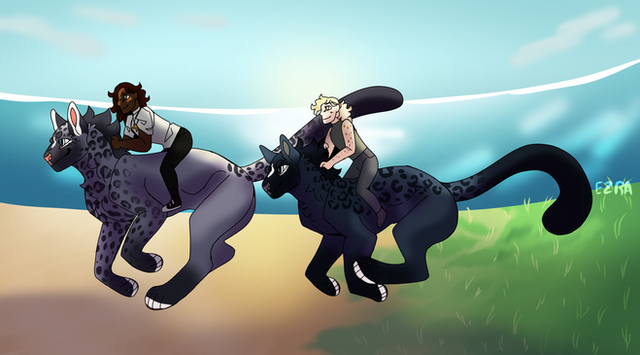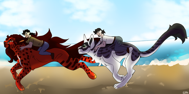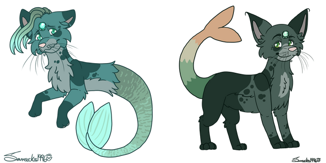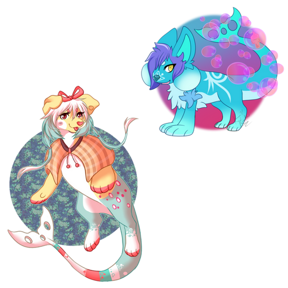 Cordelia (the lighter one) likes to dwell among coral reefs and in shallow water while Asher (Darker one) prefers land and lives on the coast. They are in a QPR and often alternate where they stay together as they are rarely seen apart.
