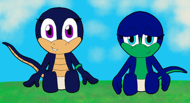 Nali-Tik adjusted her headdress and looked at her reflection in the mirror. The young komodo smiled. Her mothers, Tika and Nali-Tol had gotten permission form Queen Emerline to take Nali-Tik and her sister, Bliss, away from the Island Kingdom to explore the wider world. Nali-Tik was sure it would be an exciting adventure. She turned as she heard her bedroom door open and saw Bliss standing there. Her sister looked beautiful in her traditional robes. The timid young whiptail nodded at her sister."Mothers are ready, Nali," she said. "Are you all set?"