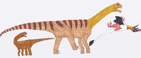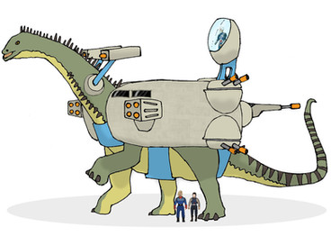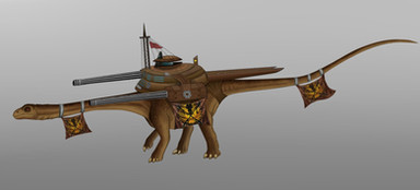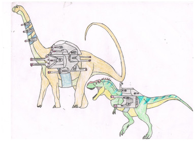 The Valorians have had a long association with sauropods with Diplodocus carnegii and Apatosaurus louisae (Formerly Brontosaurus) being the most common mounts. The recent addition to the Rulon forces, in the form of their SuperCrocs, has forced the Valorians to look at using some of the truly giant sauropod species to counter this new threat. Giants like Diplodocus hallorum (Formerly Seismosaurus), Argentinosaurus, Sauroposeidon, and Supersaurus, are now being recruited. These sauropods have been nicknamed: The Minesweeper Sauropods, due to their role in the Valorian forces. When the Valorians need to patrol near lakes, rivers, and other waterways, a guard of two Minesweeper Sauropods lead the way. Fitted with large bulldozer blades, coupled with their shear size, these sauropods can locate, dig up, and safely shift any SuperCrocs away from the rest of the Valorian patrols before they can attack. The sauropods are also outfitted with some of the biggest guns the Valorians have. Twin-linked lascannons are mounted over the shoulders. Over the hips are mounted plasma cannons. The neck harness bears a small missile launcher modified from those used by the smaller Dipoldocus species. And the tail is sheathed in a flexible plate armour for close combat.These Minesweeper Sauropods are also useful during peacetime. The dozer blade can be used to help clear land, and plow fields for the Valorians to farm and grow crops on.