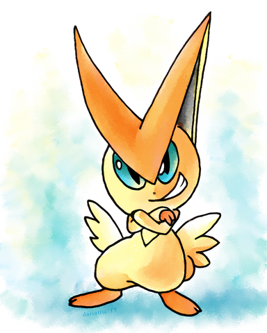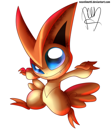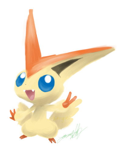 This is funny, I just finished a drawing of Victini! LOL!! Yours is a lot cuter.