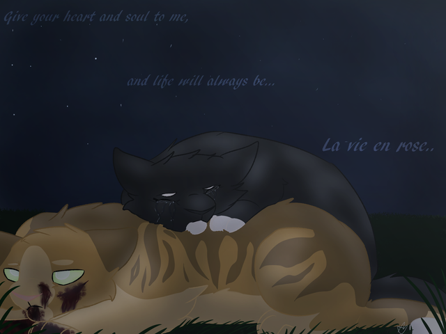 I finally finished another digital drawing. I had a lot work, but I had a little bit time to make this.This are Squirrelflight (left) and Leafpool (right). This is the first time I drew them like this and I'm still experimenting with fur patterns. This is how I see them.
