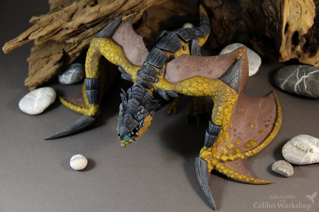 A 3D print of Odahviing from Skyrim that I was commissioned to paint and detailI love the color combos of red, black, blue and gray!