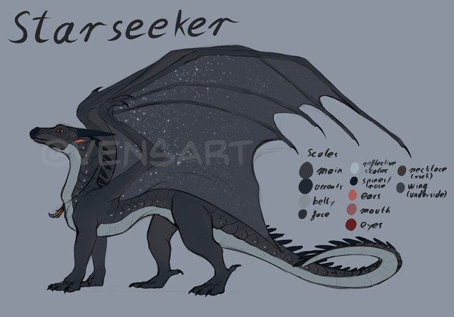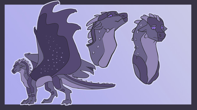 Shadowseeker like other dragonets in the Nightwing kingdom on the volcano island was well protected and guarded. However, she has always had dreamed of joining her tribe on hunting, trips, missions etc.. and finding her place within the tribe. She wanted to prove that she is more than just a dragonet that has to be protected. As a result, she figured that the best way she can help restore her tribe is by replacing what they had lost many centuries ago and what they now only pretend to have; Nightwing powers. She slowly began her research by secretly reading various scrolls on ancient Nightwings, their powers and other various forms of magic while her claw mates slept. Eventually, she approached Mastermind with her theories and ideas. They got started right away in their research on dark and other taboo like magic. They did multiple experiments, some of which were breakthroughs, untill one experiment ended very wrongly causing her to become a mute. The inside of her mouth is now an odd white color and contains a lump where her tongue has melded to the bottom of her jaw, rendering it useless. While with her tribe in the volcano she had a distant look in her eyes. Wishing that she could talk and longs to communicate with others. However, after moving to the Rainwing kingdom, she developed a fascination with music. A way she can finally express herself. There she starts to finds herself at home and slowly learns to accept herself for who she is.