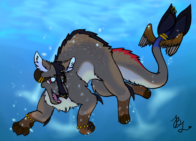 Excellent art, Liz. Yang looks so very cute and sweet. Beautiful designa dndetails of his fur, spots and bubbles. Awesomepose, colors, bg and expression.