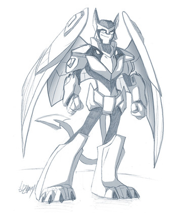 Most intriguing. Awesome take on a robot version of a gryphon. ^^