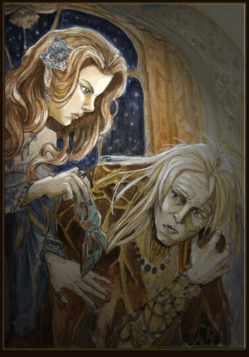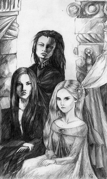 Very nice, interesting work. ^^ I guess I don't know what the original looked like, but I kinda like it with more muted colors like this. The blue-gray works well for it. Just a small tip on facial proportioning- I think maybe you're drawing your mouths a tiny bit low in the face. Overall, though, really great pic.