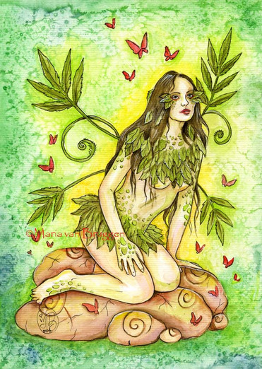 #brown #butterflies #dryad #fantasy #forest #green #mushrooms #myth #painting #roots #spirit #tree #watercolor #willow #yellow #butterfly