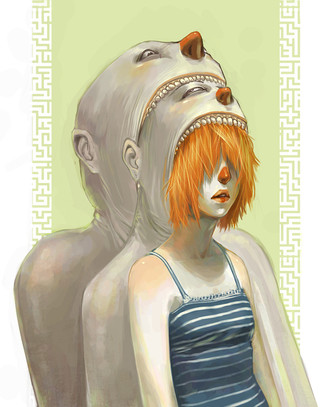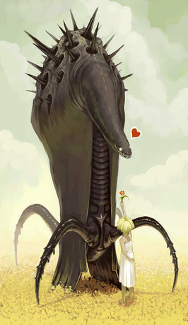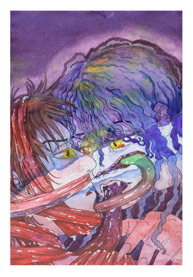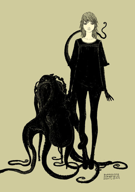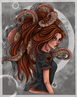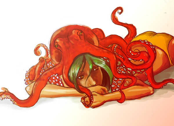 holy amazing colors. Red and blue together like this are awesome. haha. I love her expression and hte octopus itself. beautiful shading (: