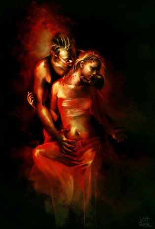 I love these colors! SO GOOD! I don't know if she's pushing him through the window kinda or not but you captured a great moment. Very intense regardless of what i just said. Brilliant! Absolutely love it.