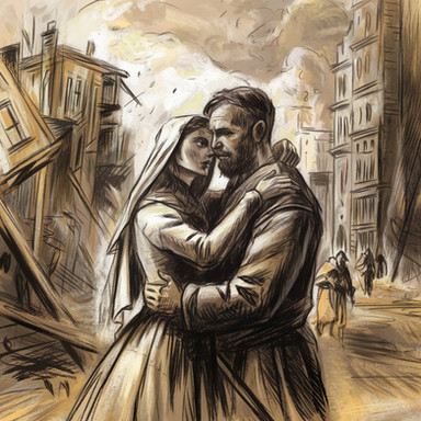 Not in particular. I just wanted to do something tragic with a very contrasted foreground/background. It seems people are attaching their own stories to it on devart's facebook page though, and some of them are quite fun