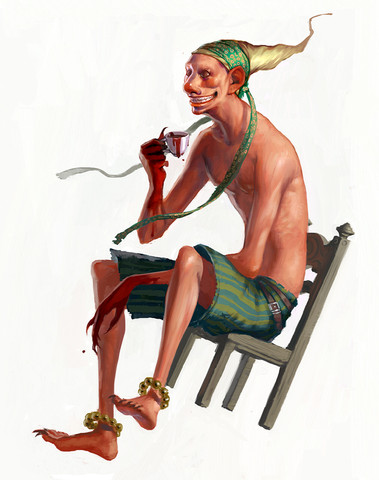 freak awesome color job. soft yet almost cold. love the character design. creepy. O_o you do folds so well. looks like this could be the art on the back of cards.