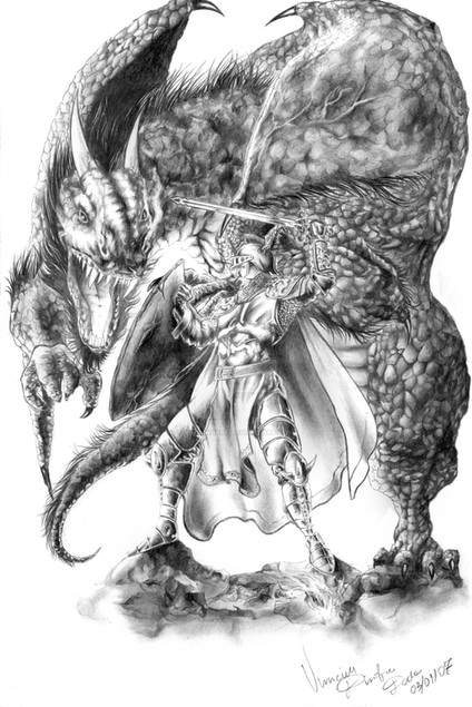 I can't look at this without wondering... how did he manage to stab the dragon in the sky? And how does the slayer plan on landing in a fashion that won't kill him?