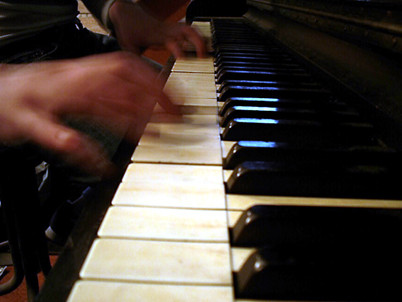 Love the shot... seeing the hand on the keyboard I presume somebody was actually playing the keyboard - makes it a bit interesting ... in that way the photo can be seen as an metafore of the music.