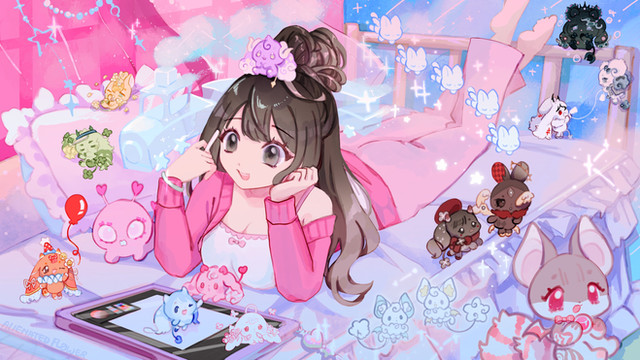 I made this very simple animation, using only like 3-4 frames... which i'm gonna start putting in the corner of my speedpaintsI made the moving background in Blender. I put them together and it looked cool :3