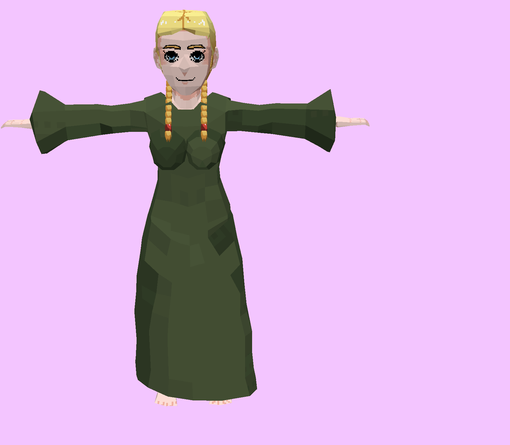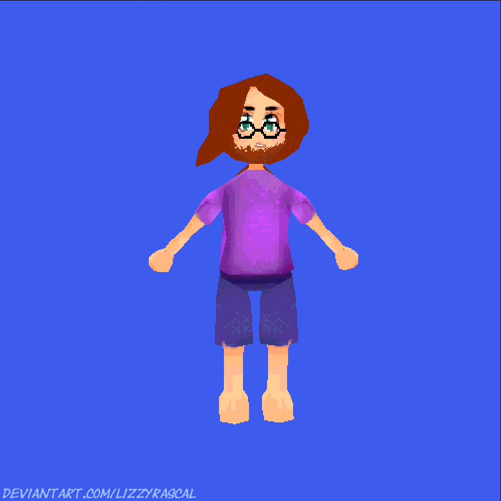 This was my first human model and is the first in line of a lot of PS1 styled characters. I wanted to go for a more anime style of PS1 games (Ape Escape and Final Fantasy were my biggest inspirations)This was modeled after my husband, and is not finished; the character has a beard and glasses... because I am visiting Georgia with my mom and husband (long story <3). So this is the first render I have.