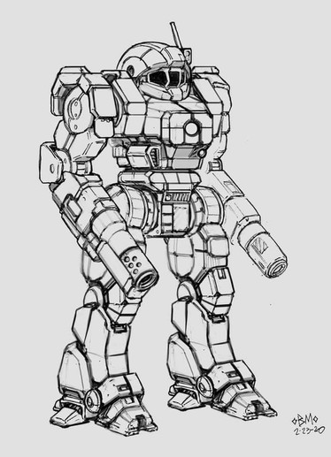 This is basically the MWO Cataphract (created by Alex Iglesias) but I changed up the canopy and some other fun details to make it feel more classic. And, pay homage to Mike's illustration.